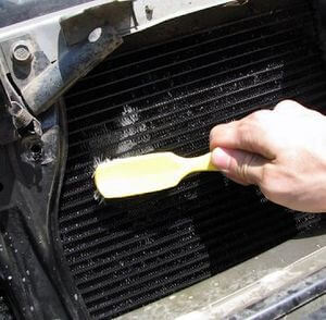 Специалисты рекомендуют выполнять очистку при помощи обыкновенной воды. Лучше всего, если она будет подаваться через шланг. Иногда смысл имеет очистка ячеек радиатора щеткой и только затем промывка. Часто эту процедуру совмещают с продувкой радиатора сжатым воздухом.Воздушные пробки в системе охлаждения