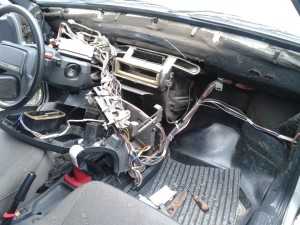 При сборке следите за тем, чтобы уплотнитель панели приборов со стороны лобового стекла находился на своем месте. Промежуточный корпус центрального сопла стоял там, где ему положено без перекосов. Проводка должна проходить через те же проемы, что и до разборки, иначе придется начинать сборку с начала.